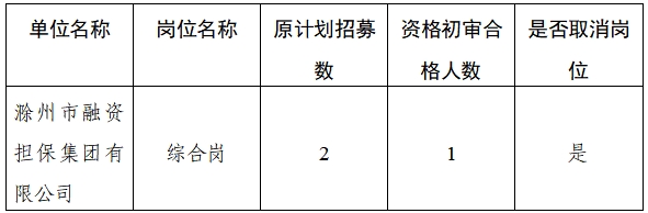 滁州市融資擔保集團有限公司招募見習人員崗位取消公告