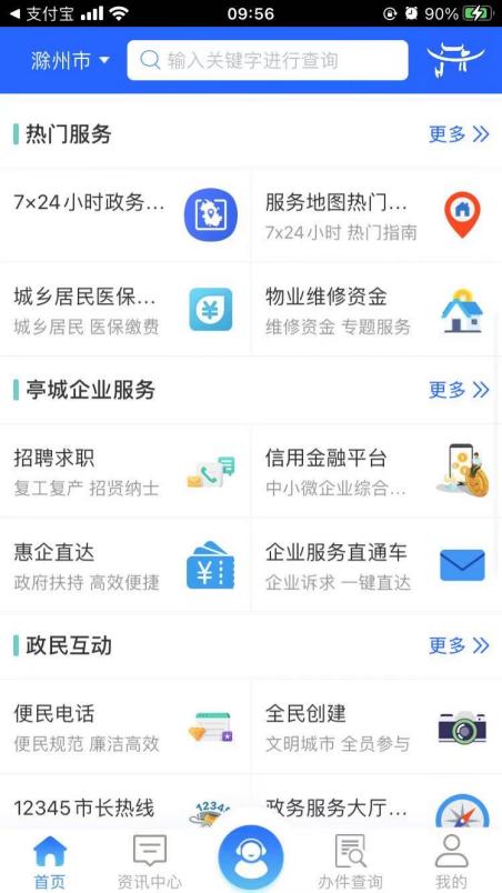 2.打開APP進(jìn)入首頁,左上角檢查城市定位是否為【滁州市】;