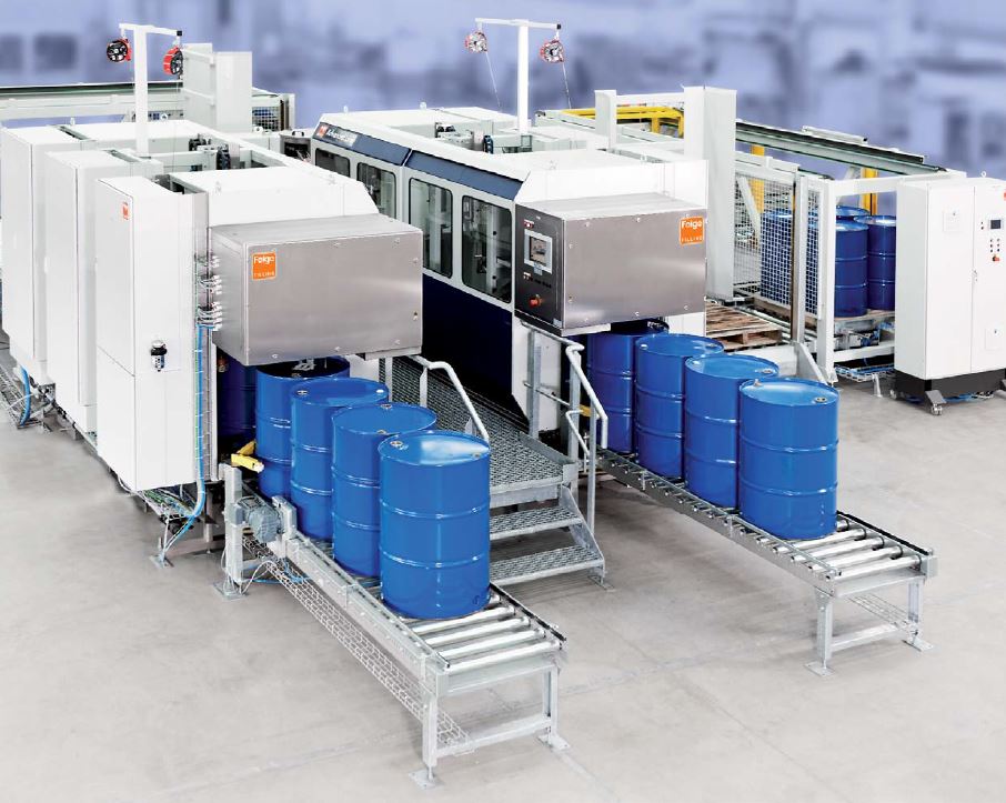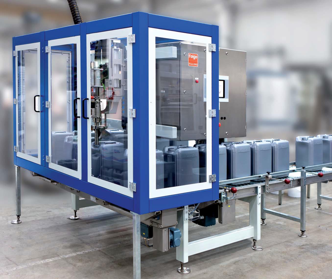 FEIGE可提供半自動(dòng)及全自動(dòng)提桶灌裝設(shè)備,灌裝重量可達(dá)60kg,灌裝速度可達(dá)30桶/分鐘??蛻?hù)可根據(jù)自身需求選擇多種附件以擴(kuò)展功能,并附帶關(guān)蓋與壓蓋功能。適用于易產(chǎn)生泡沫的產(chǎn)品灌裝,或在根據(jù)ATEX定義的危險(xiǎn)區(qū)域內(nèi)使用。