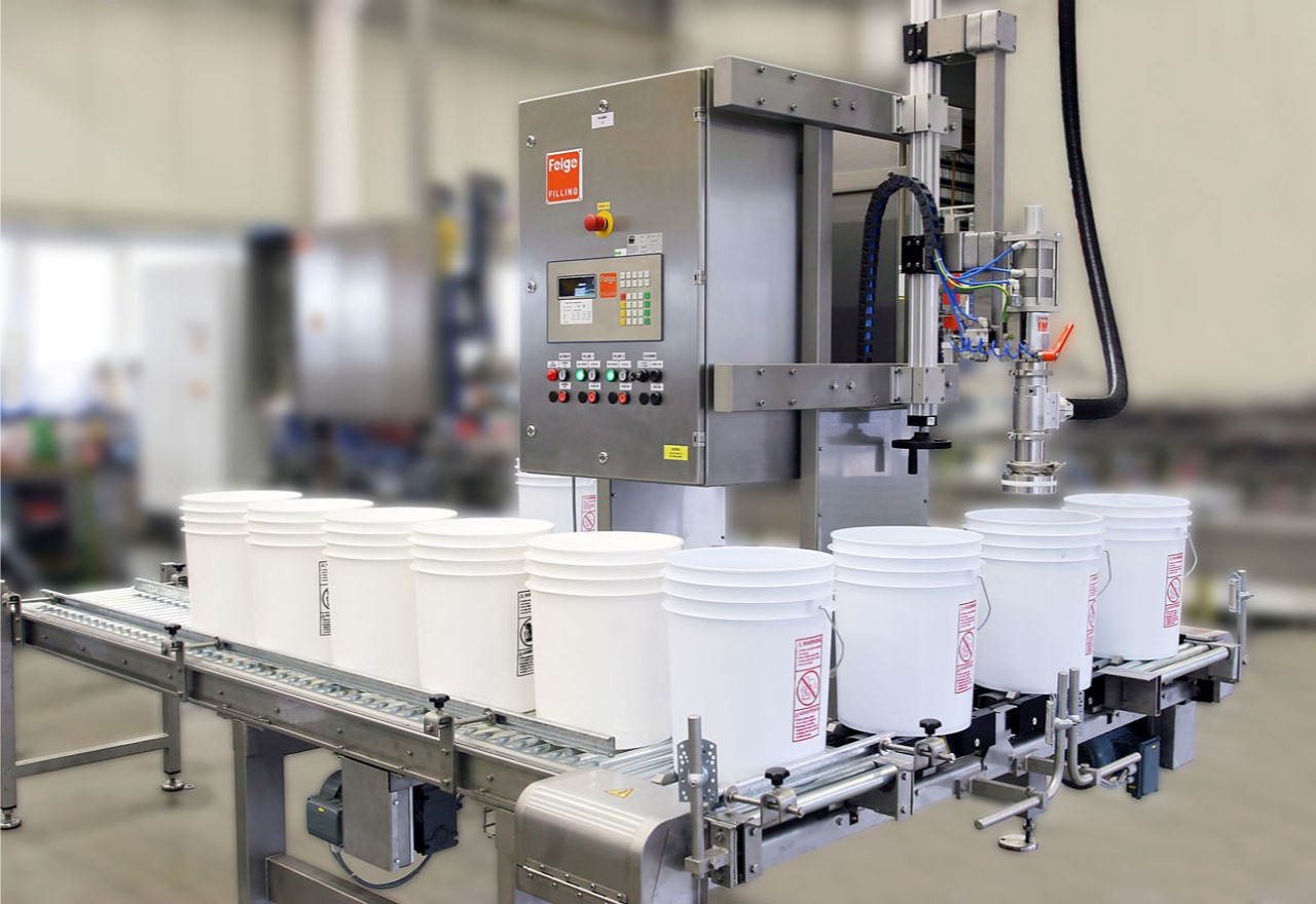 FEIGE可提供半自動及全自動提桶灌裝設備,灌裝重量可達60kg,灌裝速度可達30桶/分鐘??蛻艨筛鶕?jù)自身需求選擇多種附件以擴展功能,并附帶關蓋與壓蓋功能。適用于易產生泡沫的產品灌裝,或在根據(jù)ATEX定義的危險區(qū)域內使用。